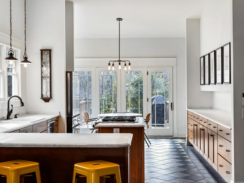 Enjoy your morning coffee in a custom-built kitchen sun porch, designed for comfort and durability.
